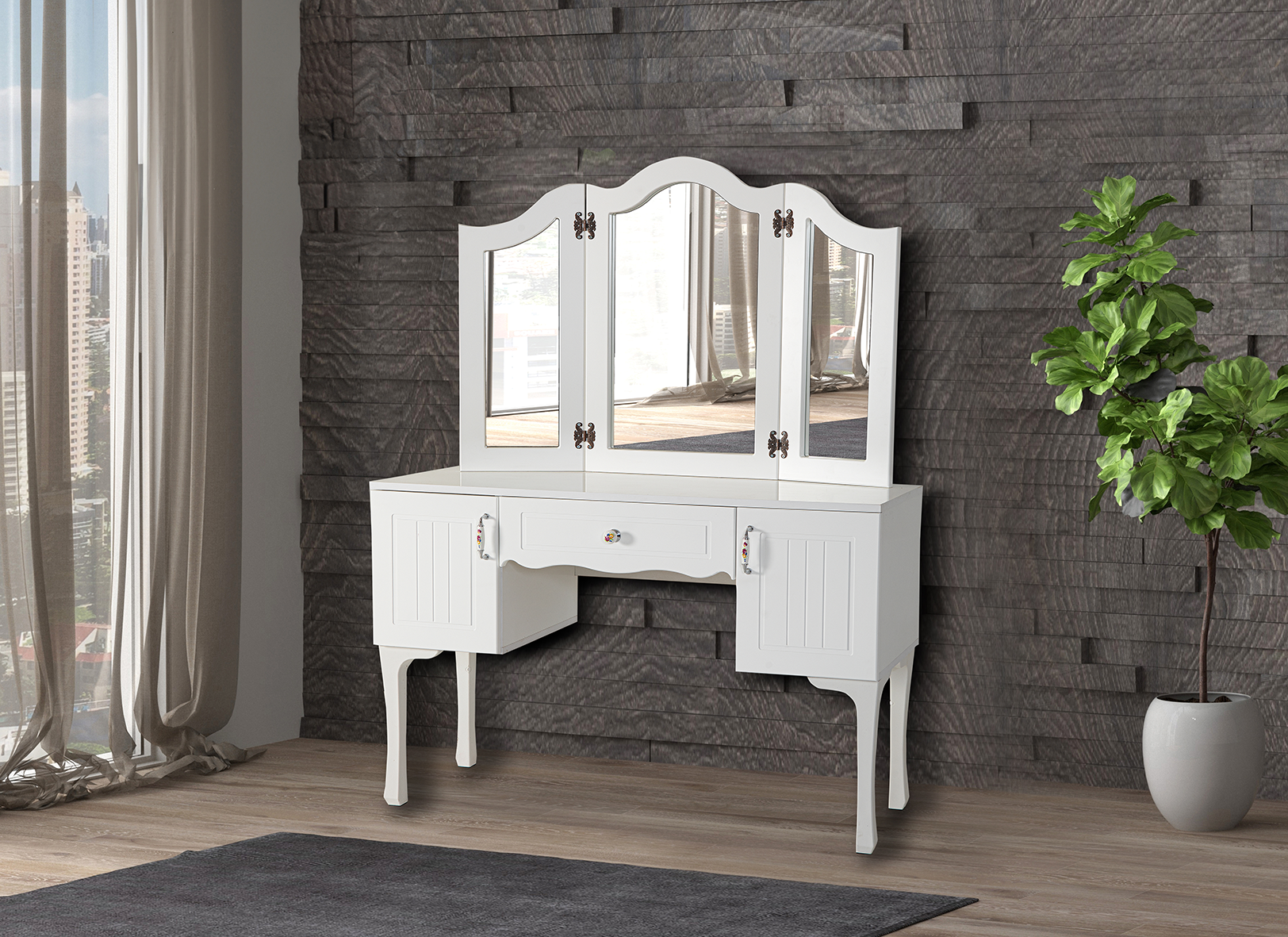 2 Dolap 1 Çekmece Aynalı Makyaj Masası